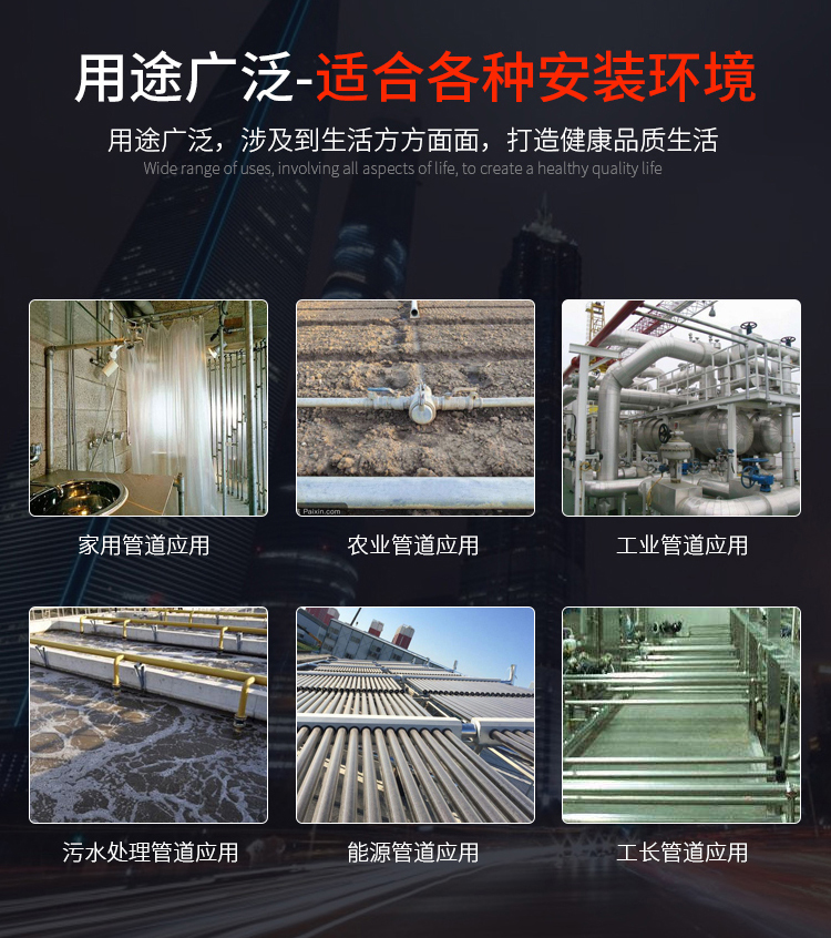 廣泛用于醫(yī)院、酒店、住宅小區(qū)、寫(xiě)字樓、學(xué)校等工程配套管道系統(tǒng)