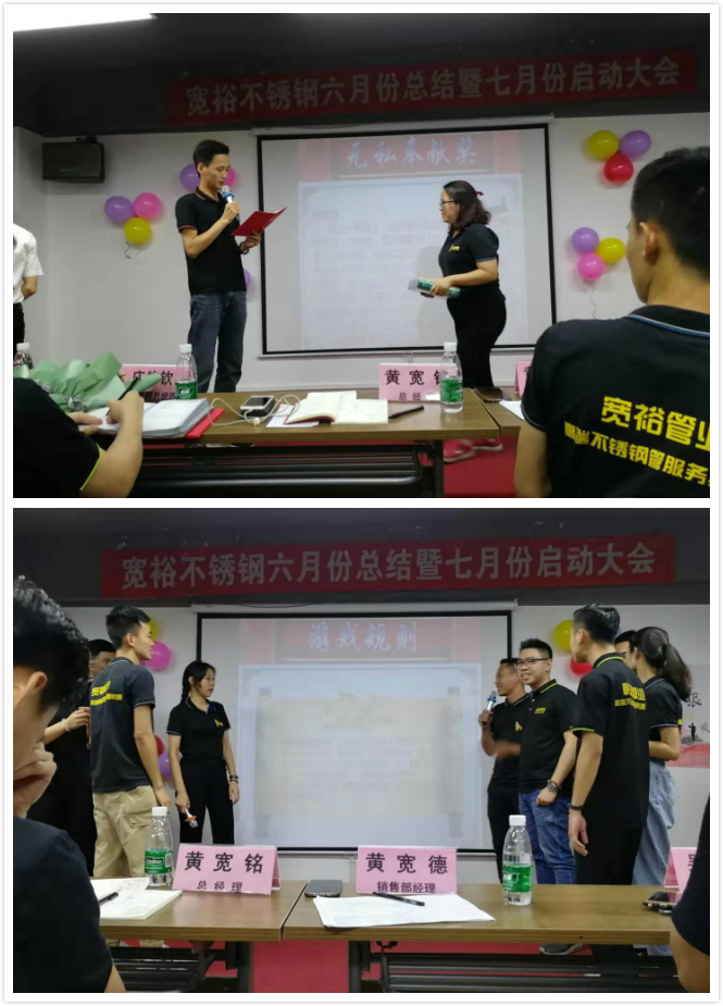 為了營造一個和諧順暢的工作環境、明確公司的發展方向,清晰公司的經營思路。于2019年7月4號迎來了廣東316L不銹鋼水管管件廠家六月份總結暨七月份啟動大會,會議上精彩紛呈,分別由我們的家人逐一上臺演講與客戶溝通過程中的種種事跡,讓我們學會了:客戶第一,客戶是我們的衣食父母,我們要從客戶的角度去出發,站在客戶的角度去思考問題,誠信敬業、團隊合作、責任、激情。